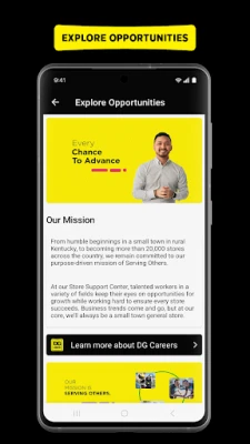 At Dollar General, taking great care of our people is part of our mission of Serving Others, and we believe our app, DG Benefits, does just that. DG Benefits puts your needs first and serves as your go-to resource for information in one place. Stay connected with us by opting in for notifications on our social responsibility, the communities we serve, career opportunities, and more! Join us in our mission of Serving Others in a culture that fosters a true team spirit.