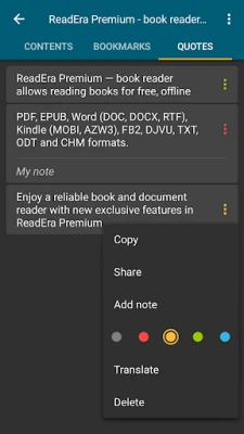 Colors for quotes. Additional colors to highlight quotes or text in books and documents you read.