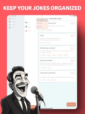 ○ Write jokes and sets, hashtag them and find them easily