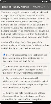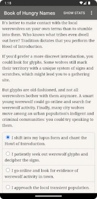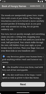 "Werewolf: The Apocalypse — The Book of Hungry Names" is an interactive novel by Kyle Marquis set in the World of Darkness. It's entirely text-based—1.6 million words, without graphics or sound effects—and fueled by the vast, unstoppable power of your imagination.